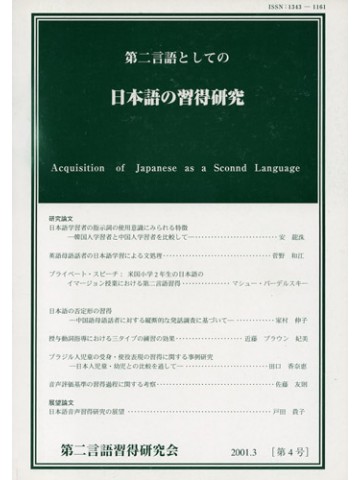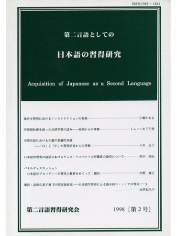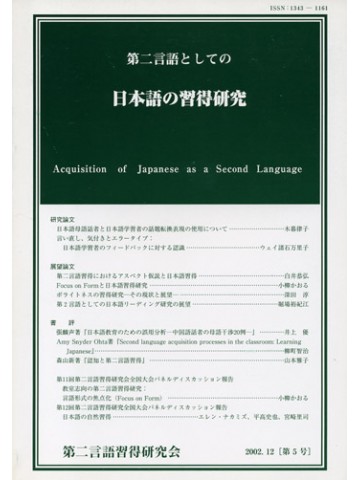 第二言語習得研究会が年に1回発行している研究誌の2018年12月発行の第21号。 一般研究論文3本、事例研究論文1本、展望論文1本、書評論文1本が掲載されています。 巻頭言:『第二言語としての日本語の習得研究』―今後の発展を願って―(坂本正) 寄稿:第100回第2言語習得研究会(関東)講演録「JSL習得研究:誕生の頃、そして今」(長友和彦) 誌上講座:脳科学から見た第二言語習得―自然な言語習得法への試論―(酒井邦嘉)