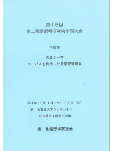 2004年12月11日、12月12日に名古屋大学で行われた全国大会の予稿集です。 大会テーマ:コーパスを利用した言語習得研究