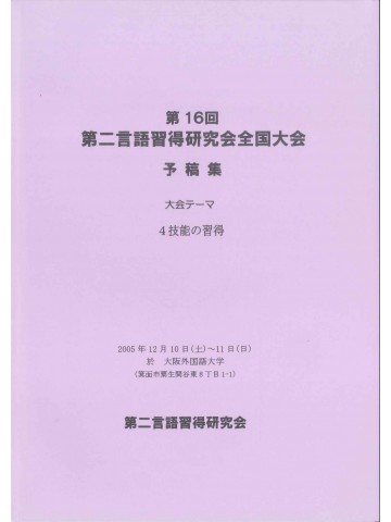 2005年12月10日、12月11日に大阪外国語大学で行われた全国大会の予稿集です。 大会テーマ:4技能の習得